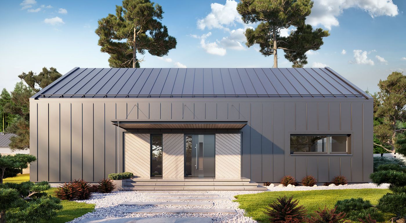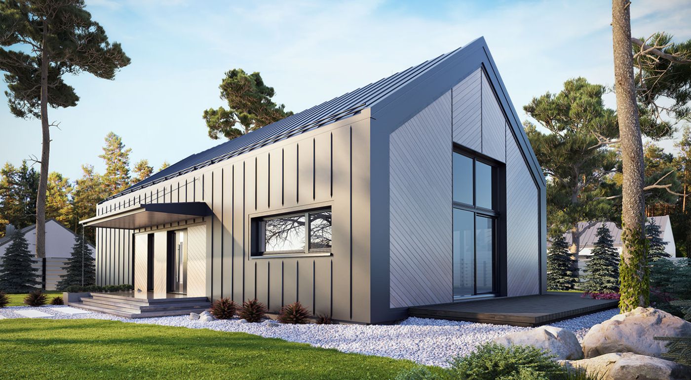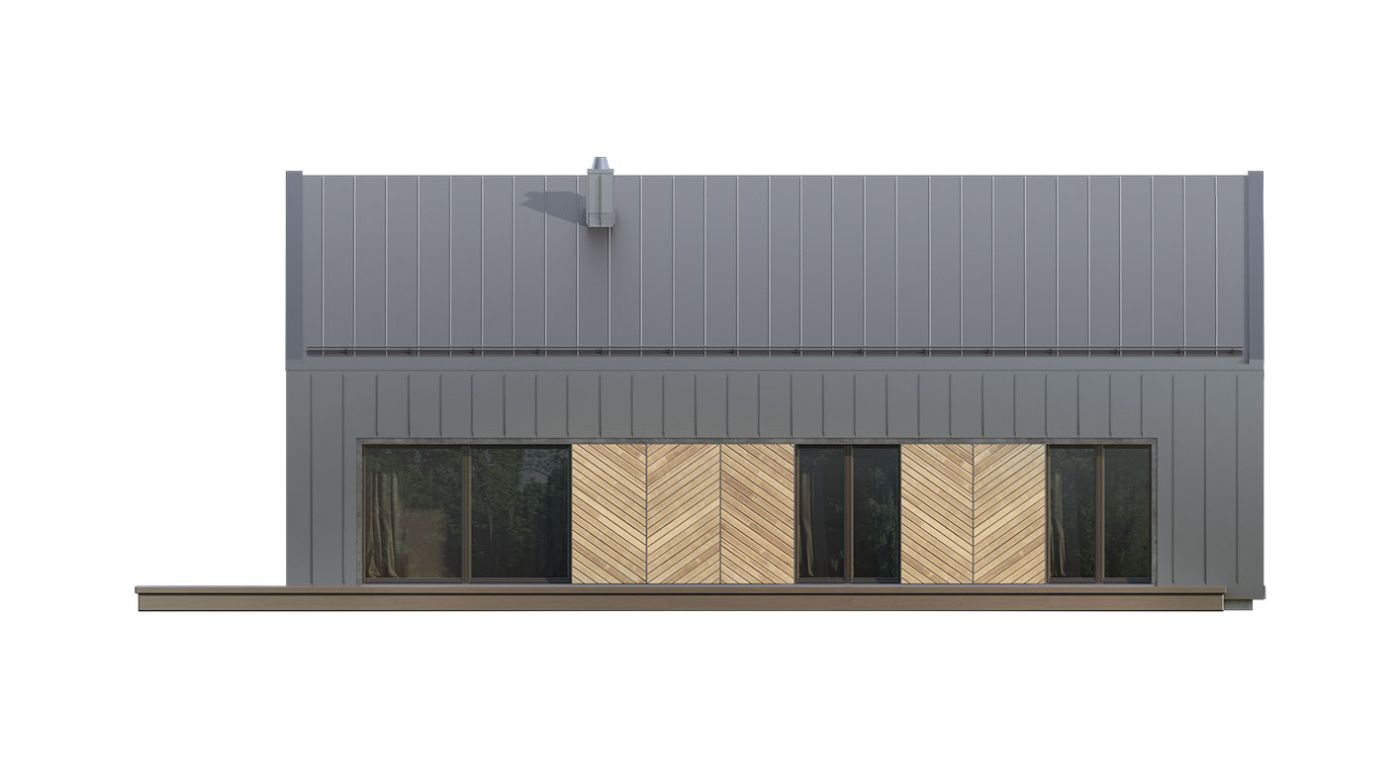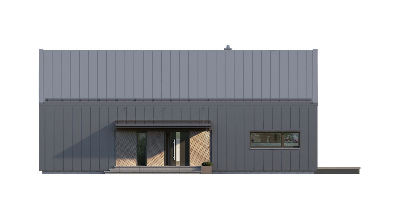 Проект Hana — это дом в стиле современного амбара. Здание без карнизов имеет прямоугольную форму. Большие окна и открытое пространство гостиной придают дому современный характер. В доме предусмотрены инженерные коммуникации на первом этаже ( 109,89 м2 ), а мезонин ( 49,39 м2 ) представляет собой дополнительную площадь, не включенную в полезную площадь, которую можно приспособить под жилое помещение или переоборудовать в мансарду. Дом Ханы прост и функционален, а его интерьер допускает множество вариантов планировки. В стандартной комплектации дом оборудован системой рекуперации тепла и тепловым насосом