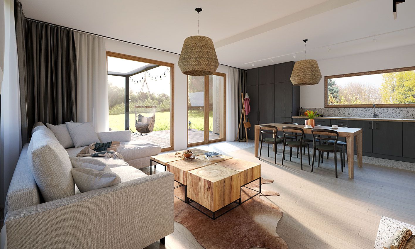Erna 2 wooden — небольшой односемейный дом или летний домик. В доме три спальни и открытая гостиная. Площадь застройки составляет 69,5 м2, возможна постройка по запросу. Это «современный амбар» с остеклением фронтонной стены. Вход в дом осуществляется через террасу, что позволяет размещать дом на участках с въездом с юга. В стандартной комплектации дом оборудован тепловым насосом и камином.
